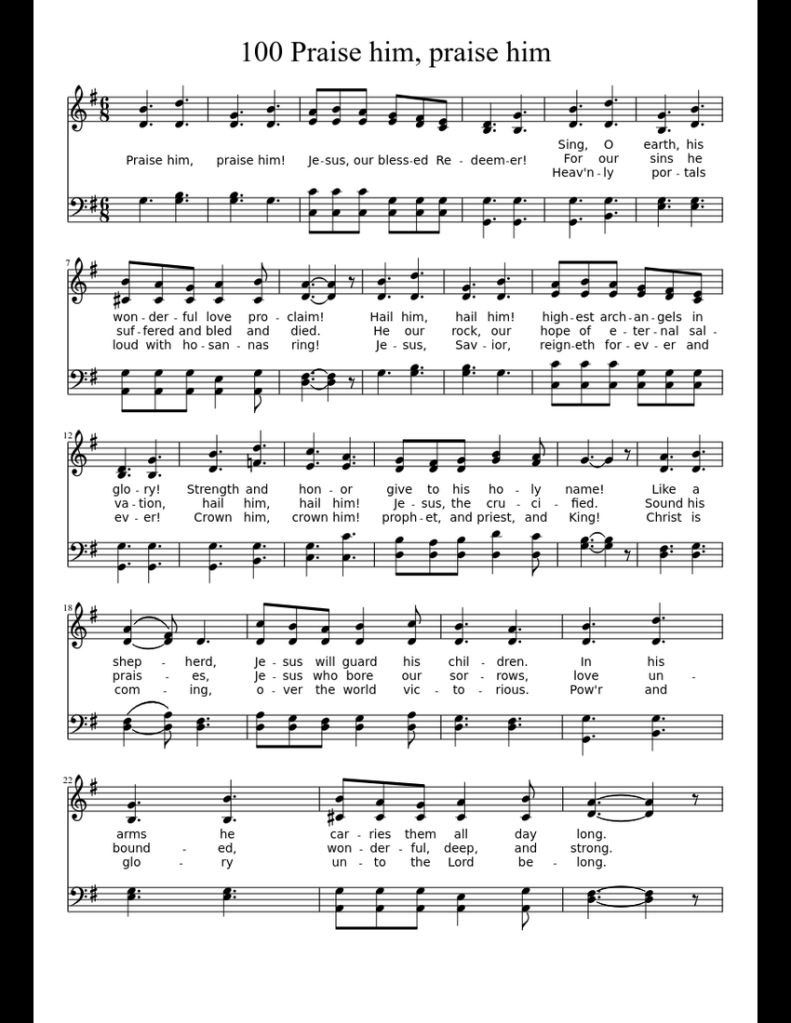 I have done this many times throughout my life. The old hymn refers to raising an “ebenezer,” or a stone of remembrance to remind us of just how far God has brought us. Just think how far you have come and how much life has changed since 2020. We all need to erect a monument to help us remember and celebrate God’s provision, justice, and grace. This year’s issues will focus on a few beloved hymns of the Church, so I selected “Praise Him, Praise Him” by Fanny Crosby as the focus for the January/February issue for this reason.